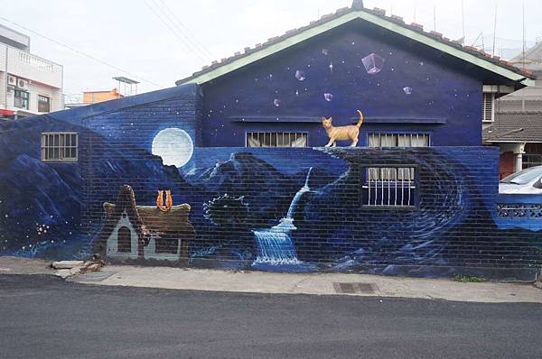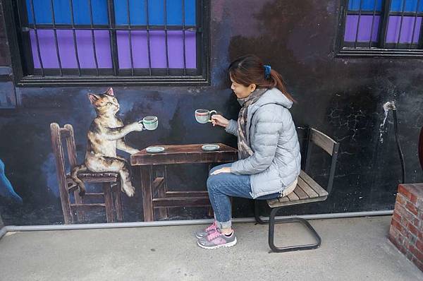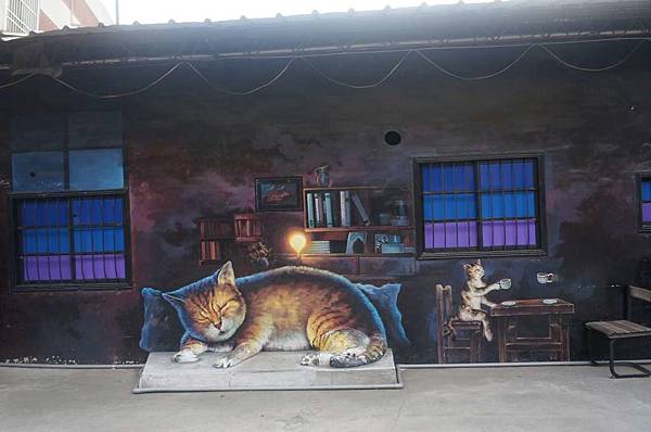 外頭的貓彩繪牆真可愛