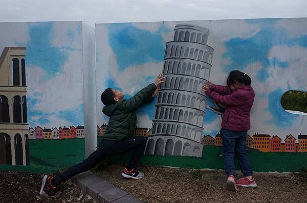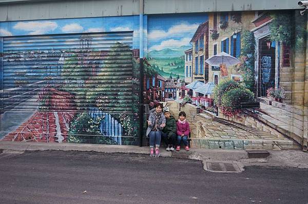 真的融入在彩繪牆中