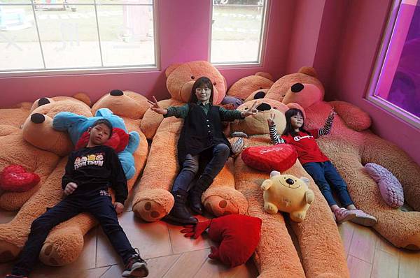 躺在一堆熊裡拍照