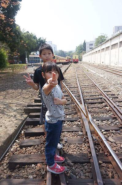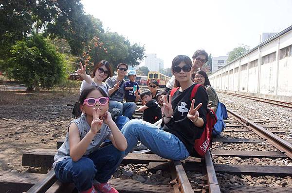 看到鐵軌我們就開心地拍照起來