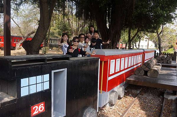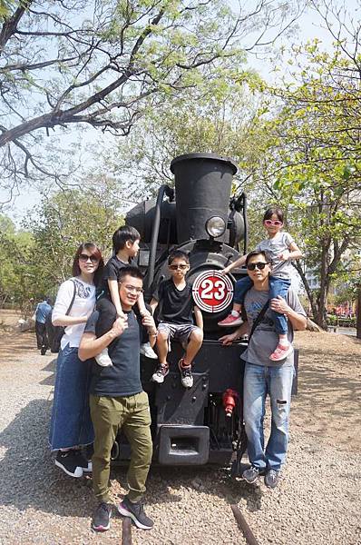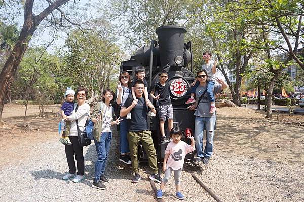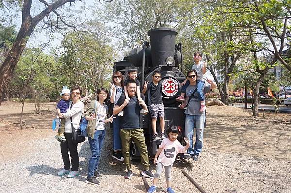 在火車頭前大合照