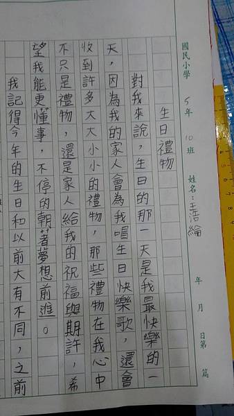 比比自己訂的題目是生日禮物