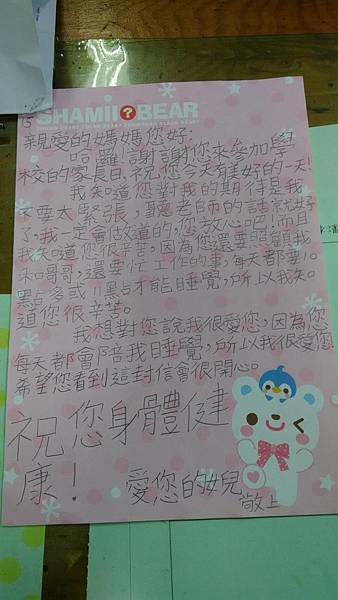 當老師講完到最後..老師就說小孩都有寫張話要給爸媽