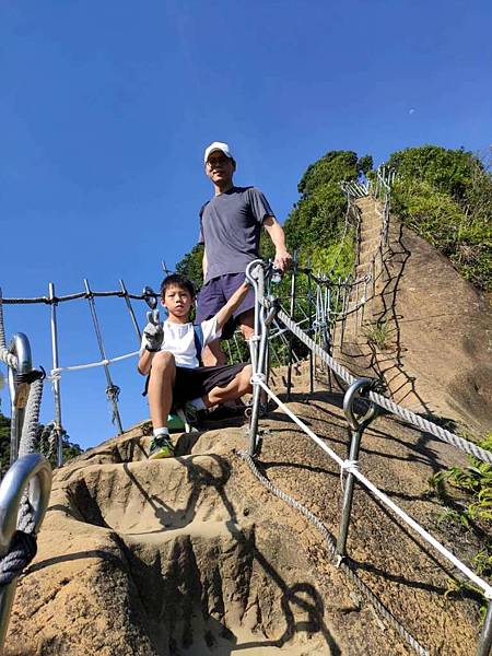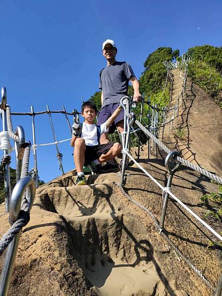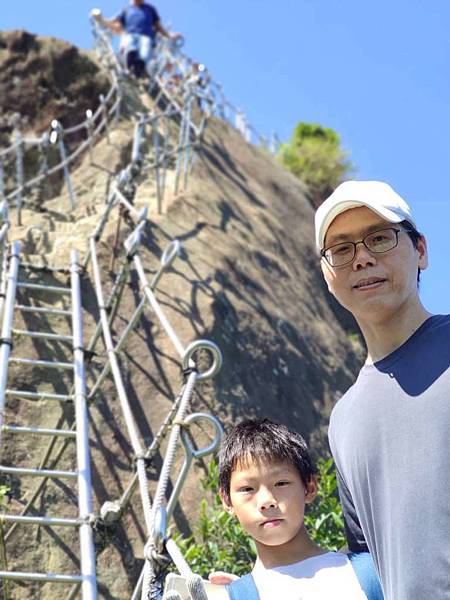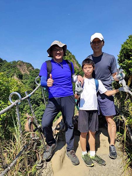 這天比爸帶著比比和他的好朋友阿溜一起去走平溪的孝子山
