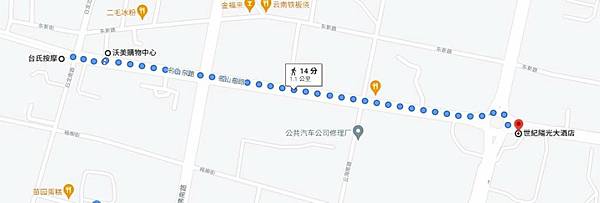 從台氏按摩到酒店距離不遠,僅1公里多。