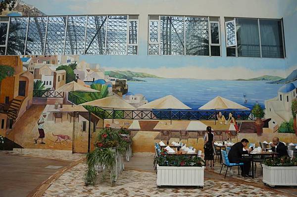 藍白色調的用餐環境,令人心曠神怡。
