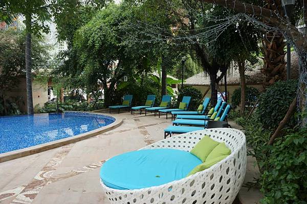 旁邊泳池的躺椅。