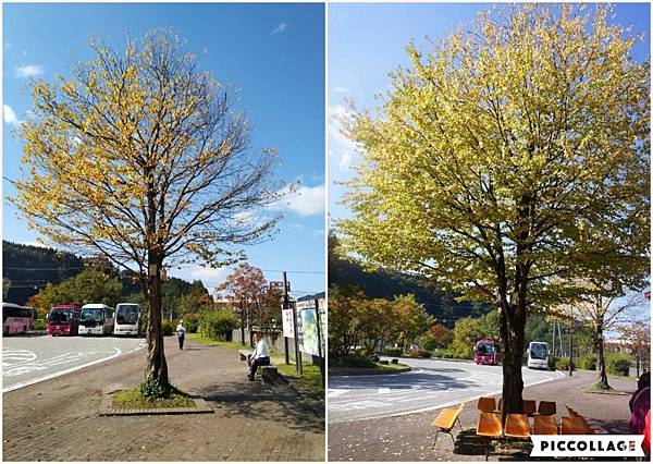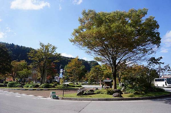 很喜歡這張照片,招牌後方樹葉有紅、有黃、有綠,非常有層次感。