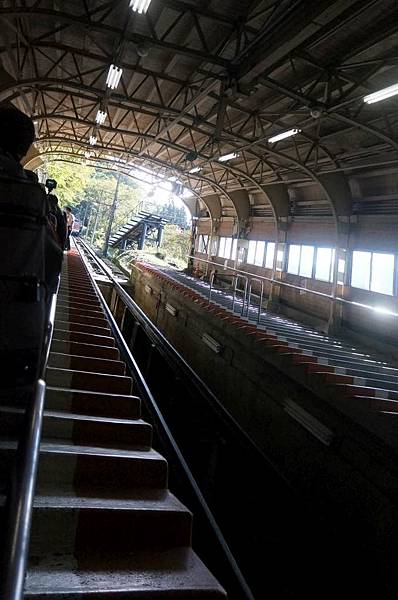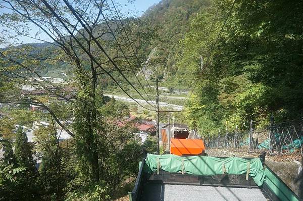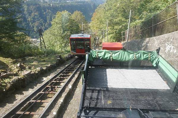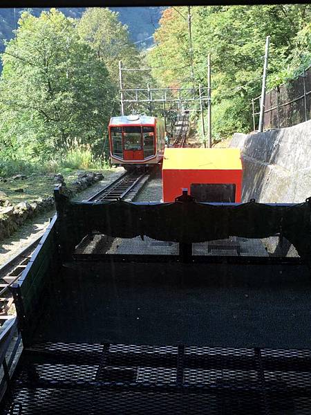 行車途中,部分路段會設計分叉為2股軌道,供上下行纜車會車。跟我們會車的是1號纜車。