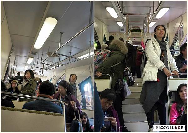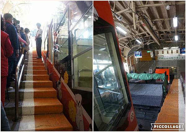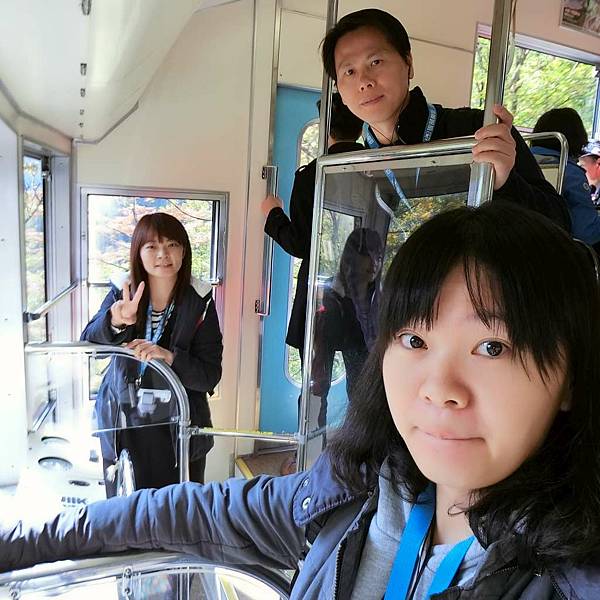 後面中間是司機的位置,因為目前是往上,所以司機在最前頭的位置,等到往下時,司機會到這邊位置,這樣車輛就不用掉頭,跟捷運一樣,前後都可開車。