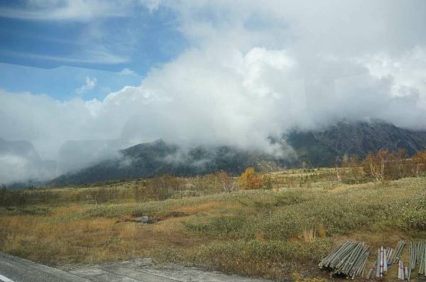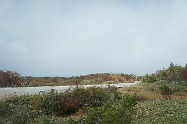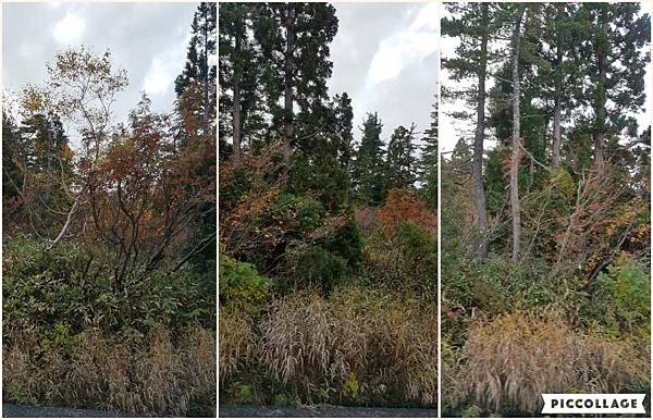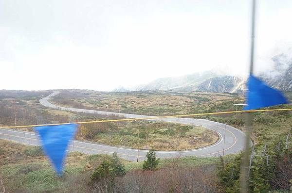 這邊道路兩旁都豎立筆直的竹子,並綁上繩索及三角旗,主要是因應雪季來臨時,才能清楚知道道路範圍。