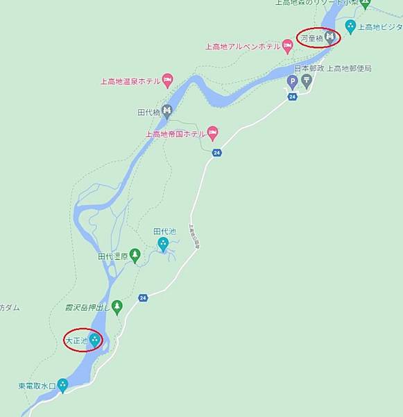 我們要從大正池一路散步至河童橋,這是我們此行的重點。