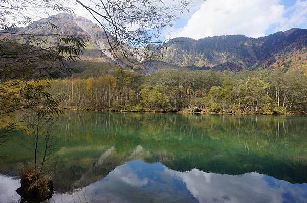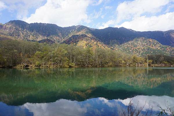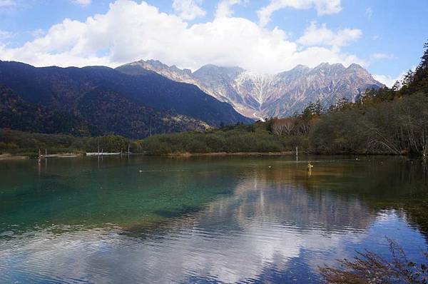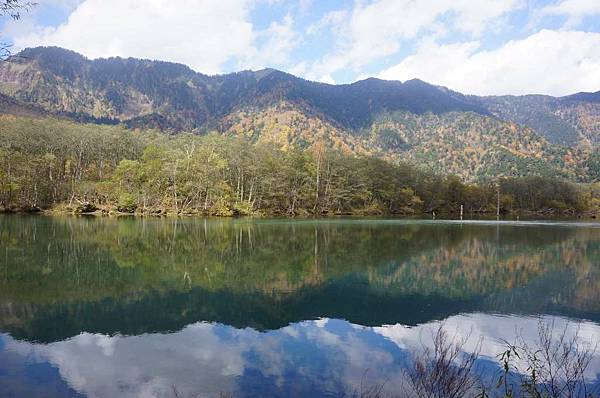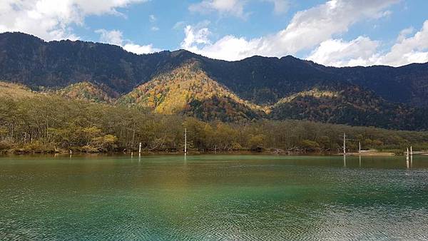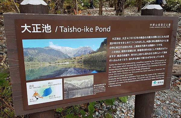 大正池係1915年燒岳火山噴發堵住梓川而形成。