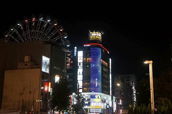 途中經過唐吉軻德,對面大樓有摩天輪。