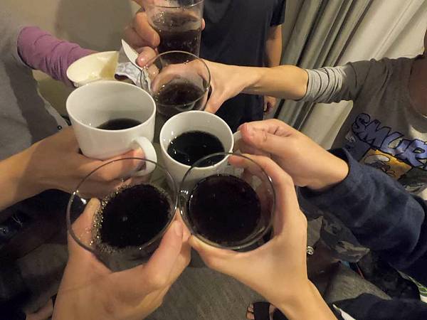 回到飯店,大家舉杯慶祝這次旅程成功。