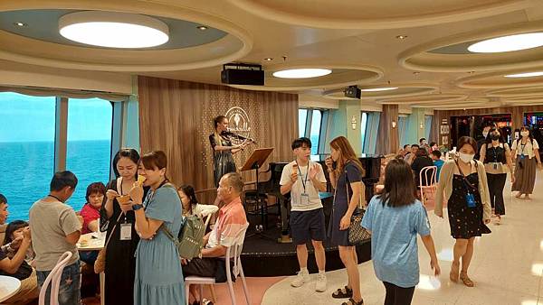 我們晚餐排在第2梯次19:30,有比較晚,所以我們先來吃披薩墊墊肚子,披薩店營業時間從19:00-01:00。一開始還找不太到,原來要從9層船尾自助餐廳,走樓梯到10層,位子不多。