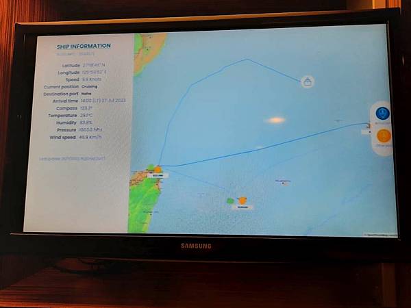 回到房間,看一下郵輪航行軌跡,原本應該是一直線開到沖繩那霸,因為提前啟航避颱風,所以繞了一個弧線。