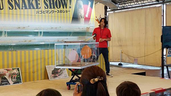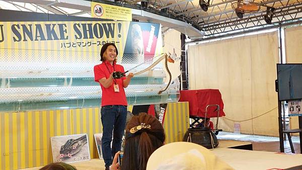 主持人拿出蛇展示給大家看,不過全場是用日語,所以聽不太懂。