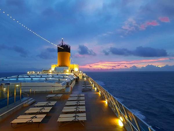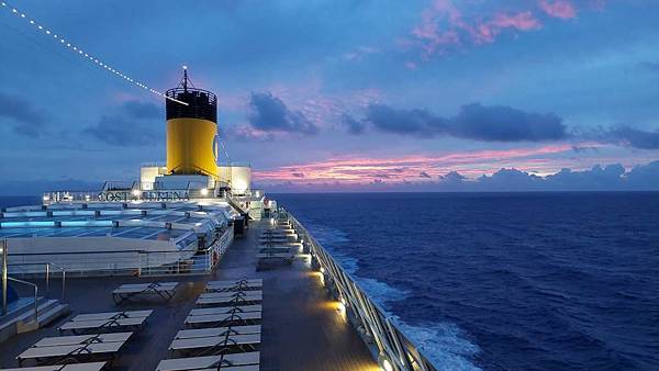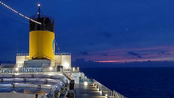 這趟旅程,因為颱風影響,一直沒在海上看到日出及夕陽。