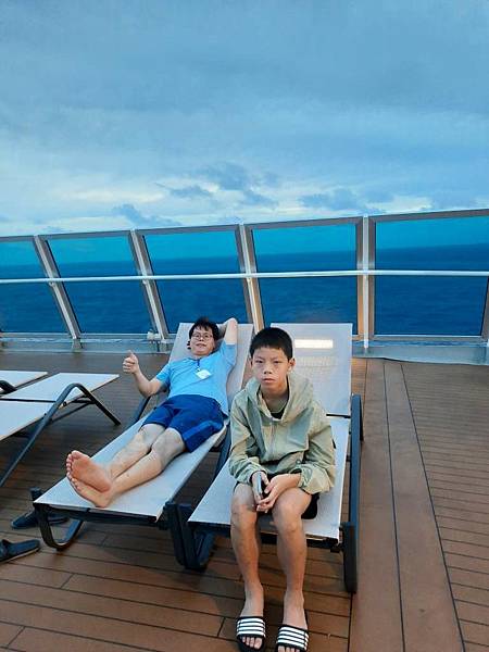 看不到日出,比比跟比爸在躺椅上休息一下。