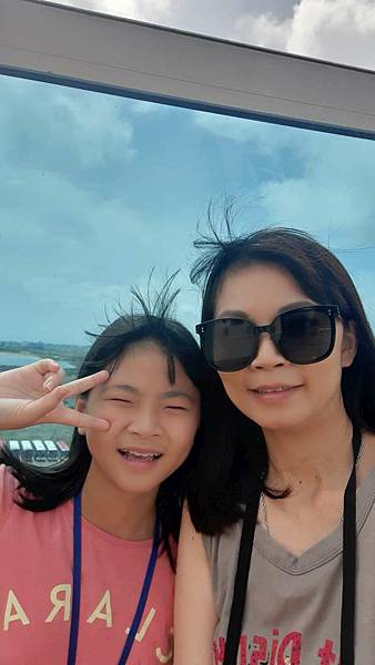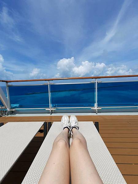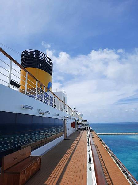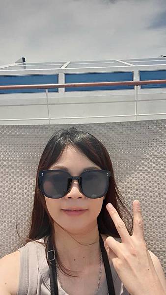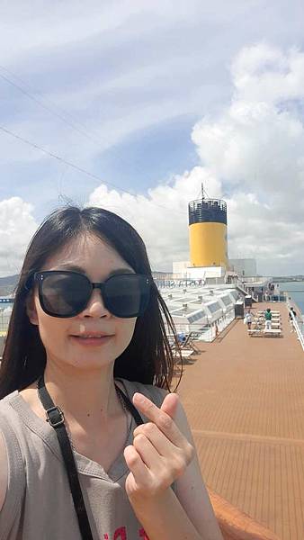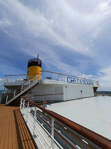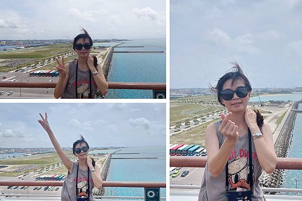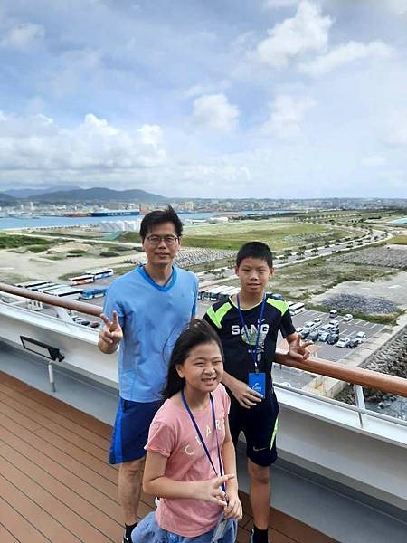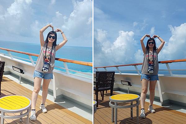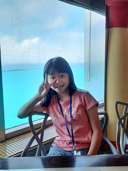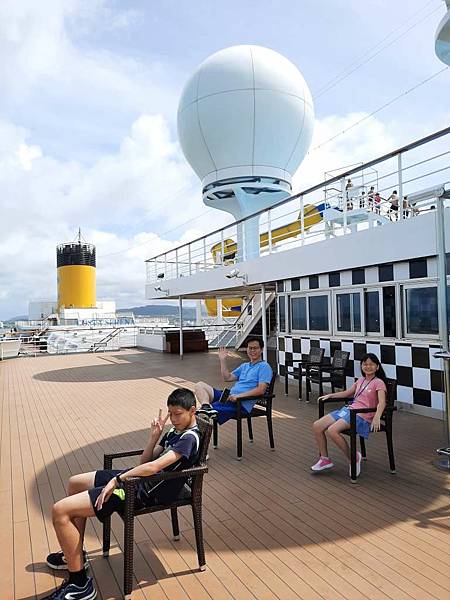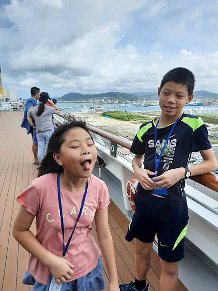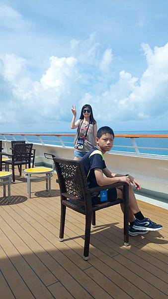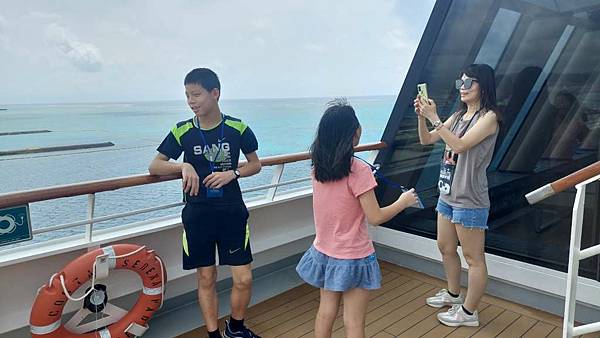 比爸在房間休息,我跟比比、咪咕再次跑上甲板拍照。