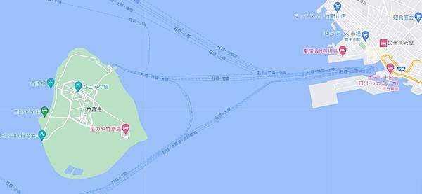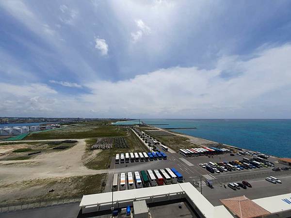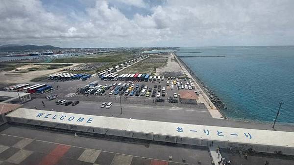 11:17碼頭停車場停滿了車,有幾台全藍色的巴士,是石垣島的接駁巴士,可以讓自由行的旅客搭車到市區。