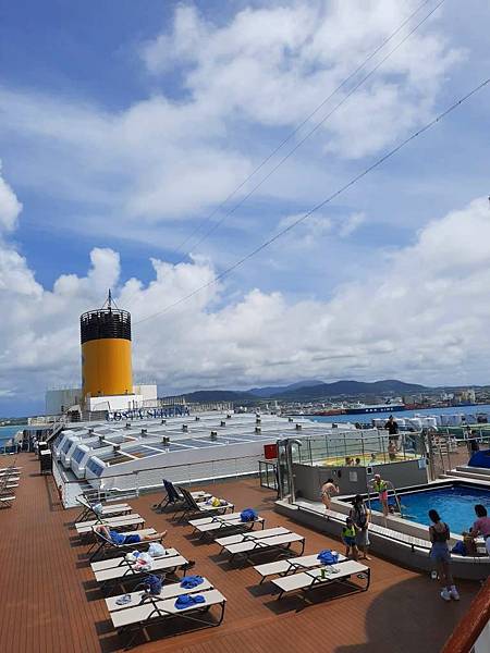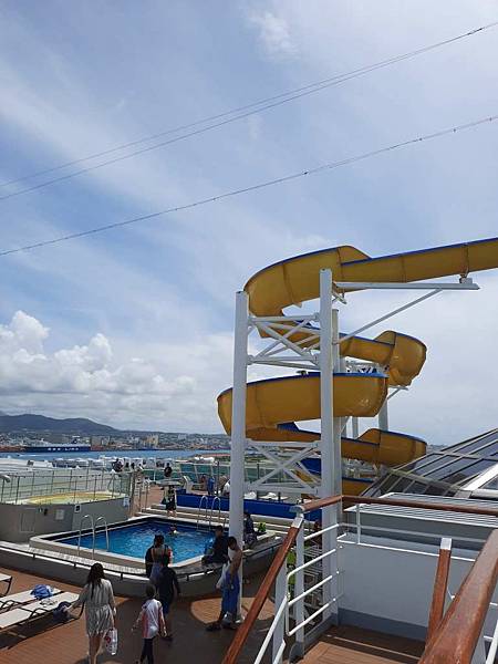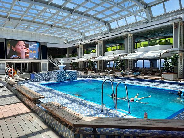 9層泳池也僅剩一些未下船的小朋友在游泳。