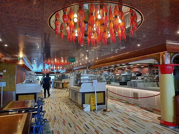 自助餐廳因為已經沒什麼人在用餐,有些取餐的櫃就收起來了。