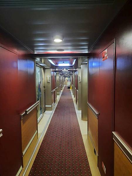 就在此時(13:10),突然發現,停車場完全沒車了,僅剩藍色的接駁巴士,而且沒人在排隊,於是趕快回房間,準備下船搭接駁巴士去市區逛。