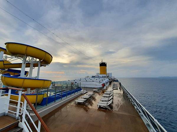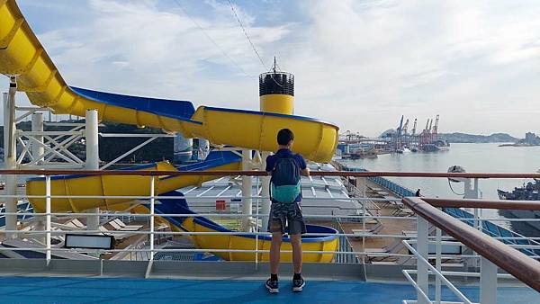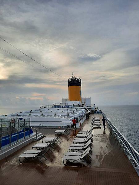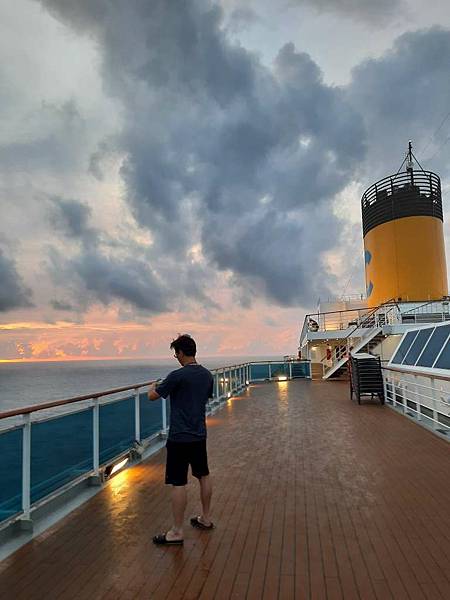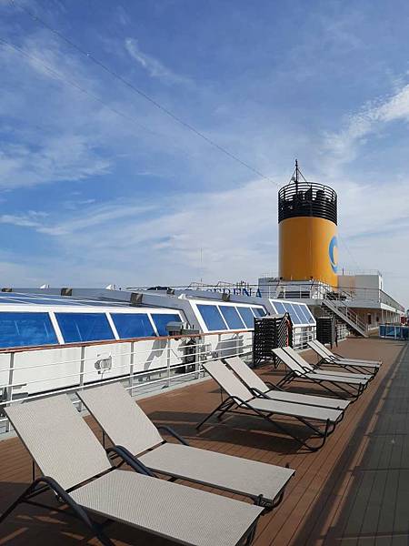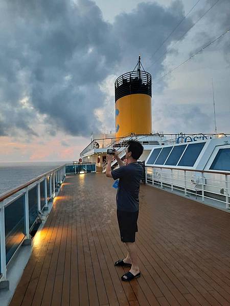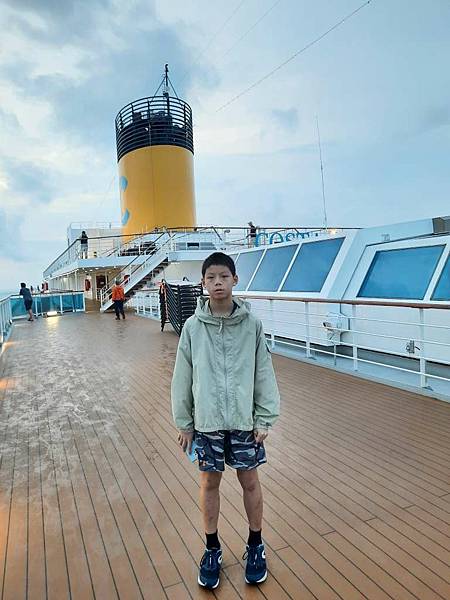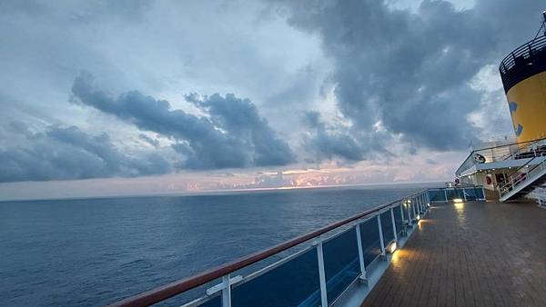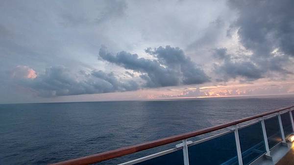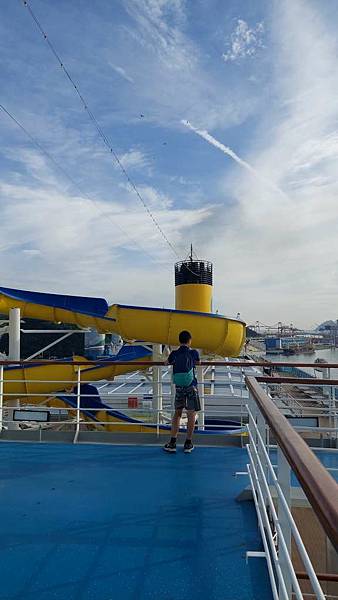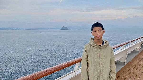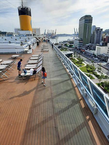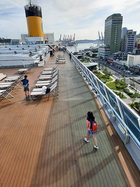 之前因為一直有人,咪咕害羞,現在這個時間郵輪已經靠港,大家都在吃早餐,甲板上人比較少。