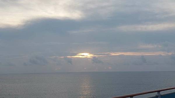 太陽已升起一段高度了,還是被雲層遮住。