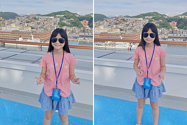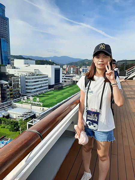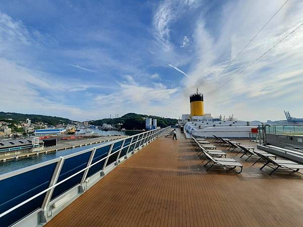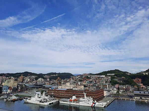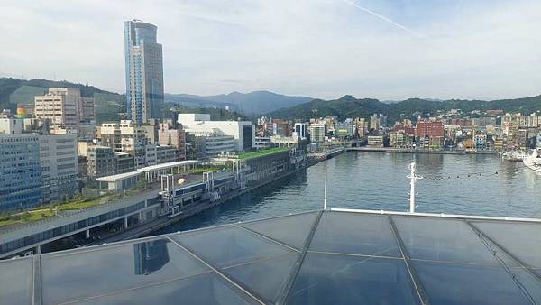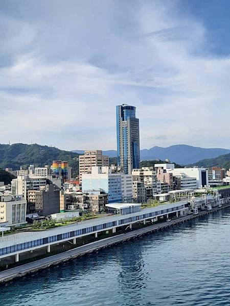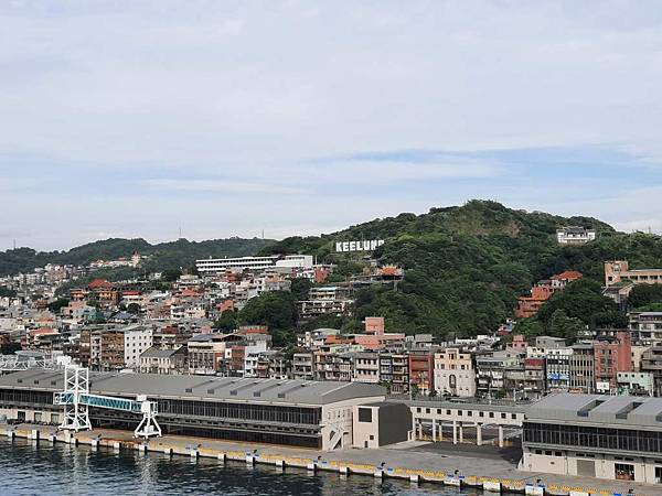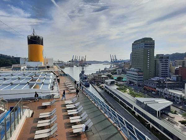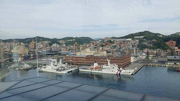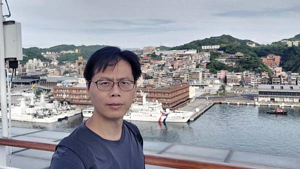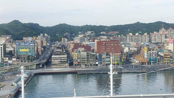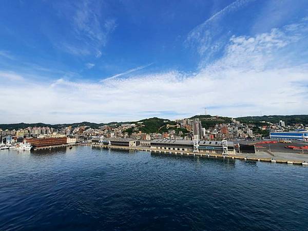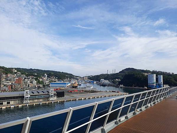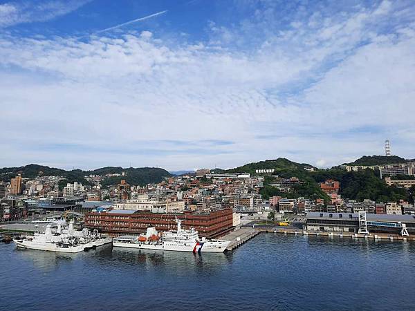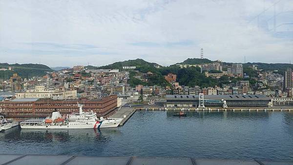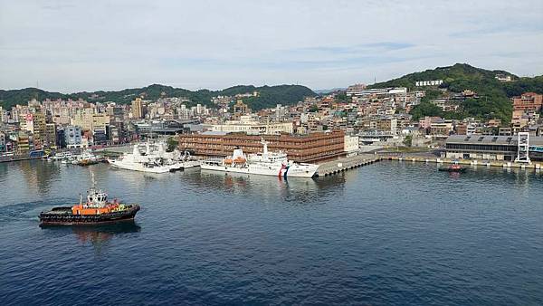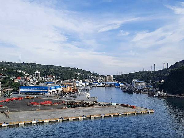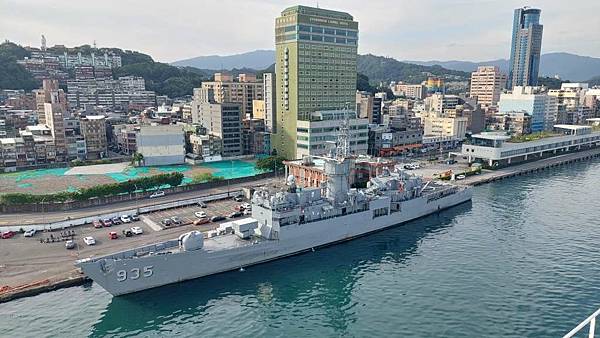 郵輪已經開到基隆港最深處,岸邊停靠著海軍軍艦。
