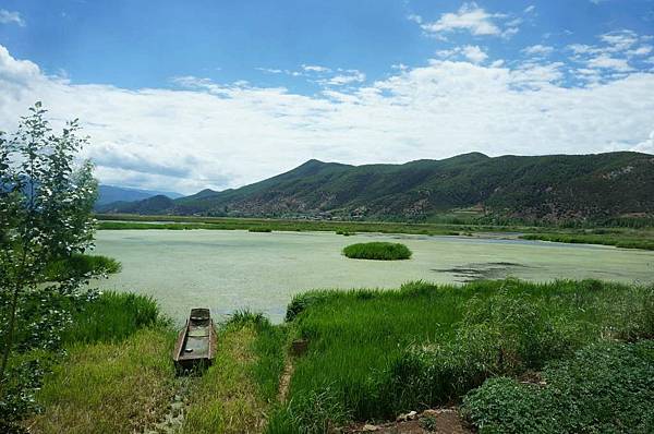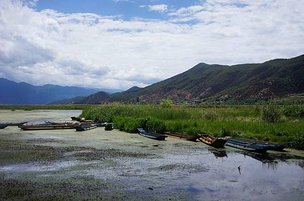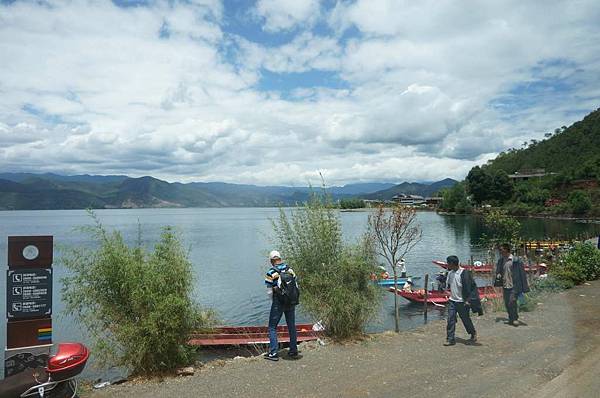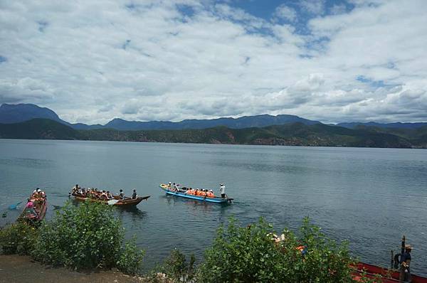 這裡可以搭乘豬槽船到瀘沽湖中的里務比島。