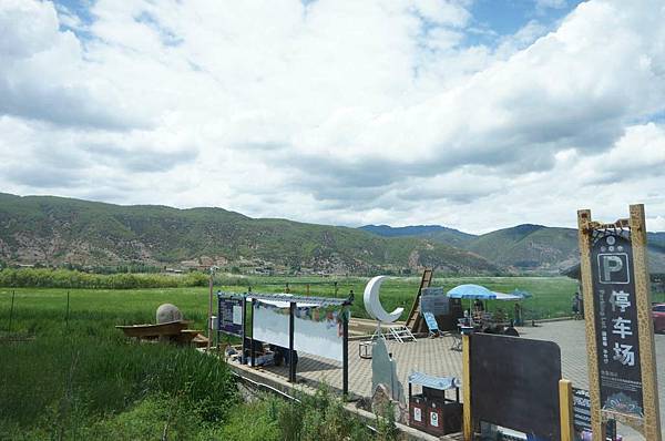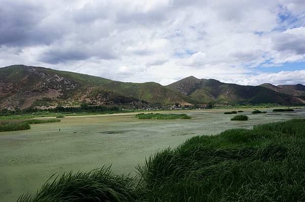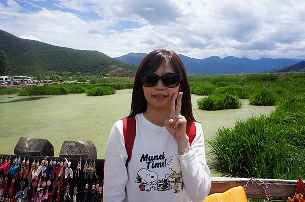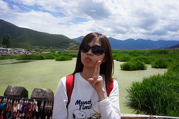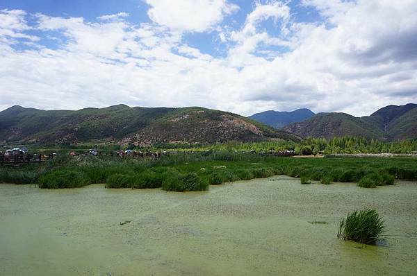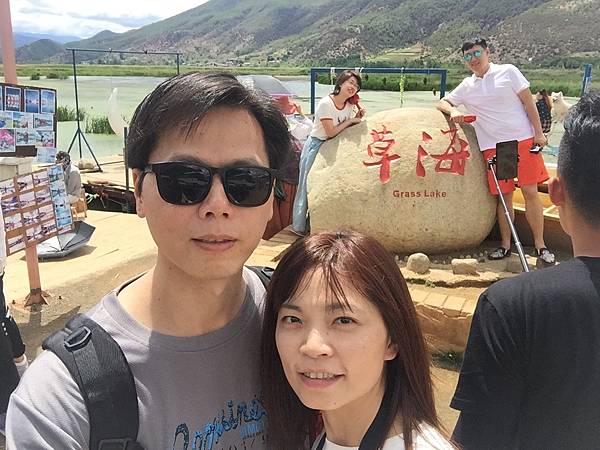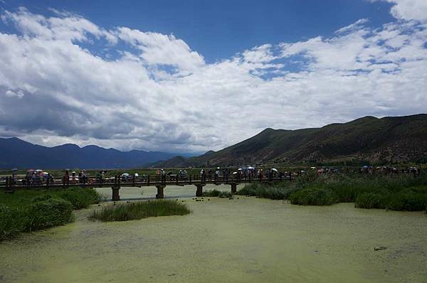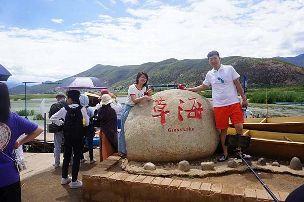 一堆人排隊跟草海地標拍照,大陸很喜歡將湖稱為海,還好英文還是翻為湖,以免外國人誤會。