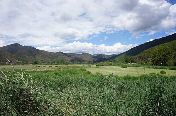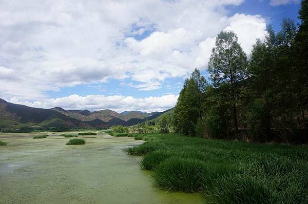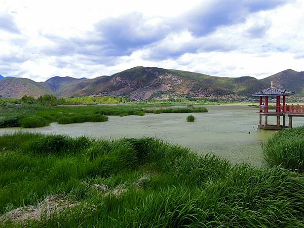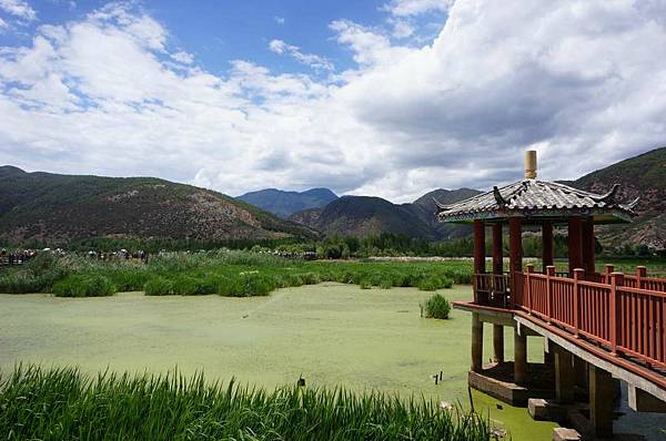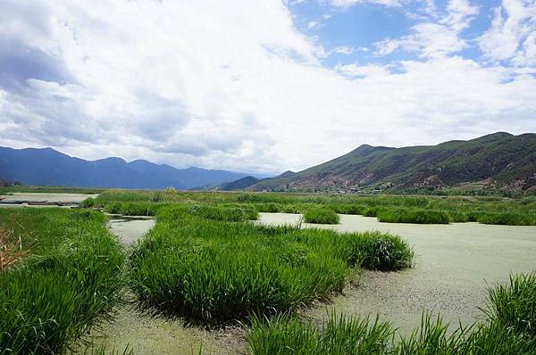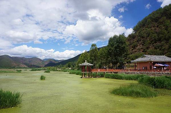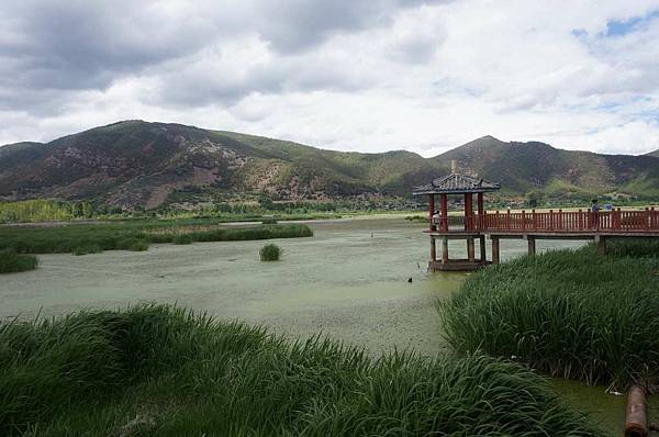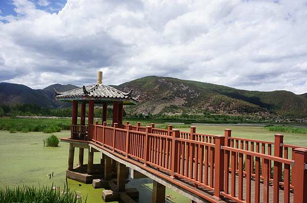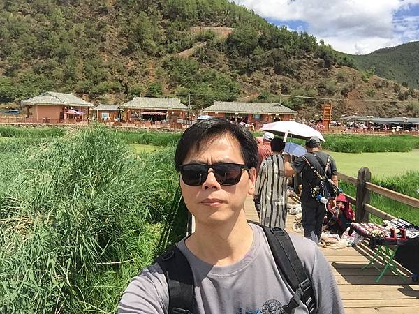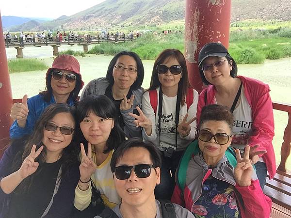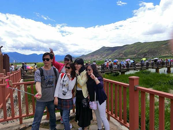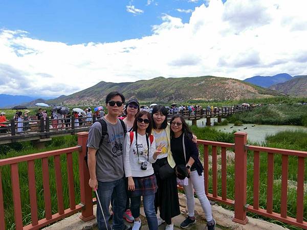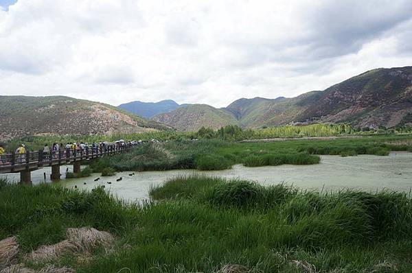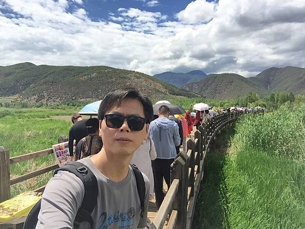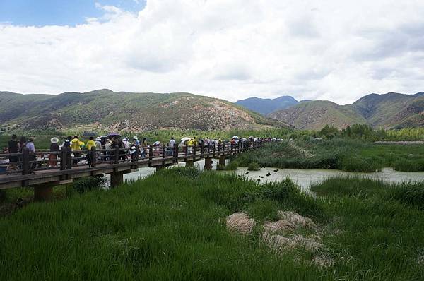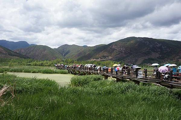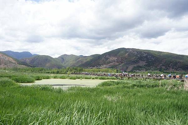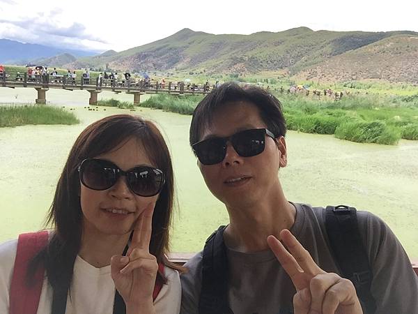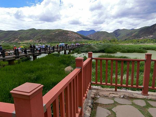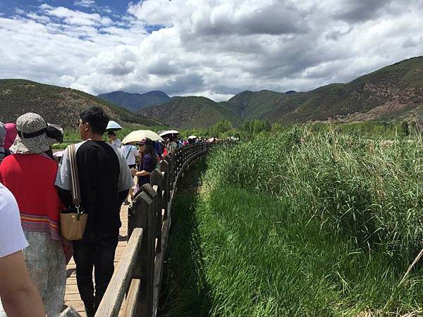 走婚橋上人蠻多的,兩側綠色的草相當茂盛。