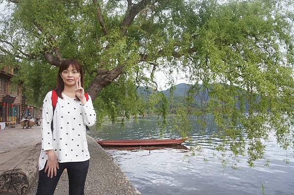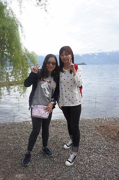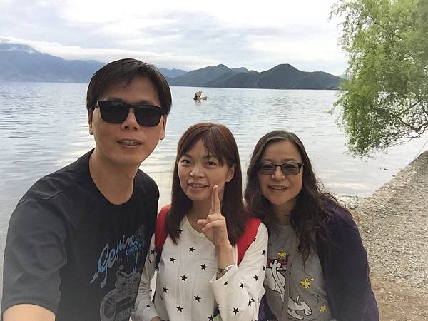 吃完早餐後,還有一點時間,我們就又來瀘沽湖畔拍拍照。