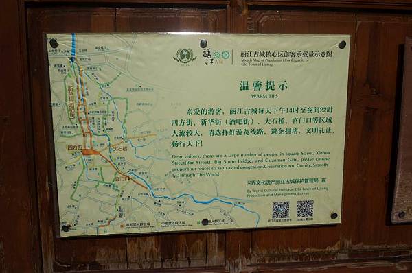 永遠的馬幫,下方有個「麗江古城黨員志願者」,提供問路找廁所、旅遊諮詢、文明引導、秩序維護、應急處理等服務。