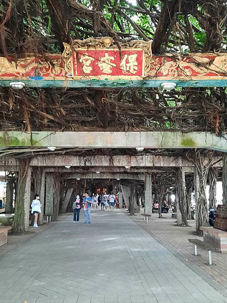 通樑古榕就在保安宮前,樹齡已達300多年,因為榕樹枝葉繁盛茂密,使榕樹向四方擴展,沿著水泥梁柱生長,形成一個天然的遮陽棚。