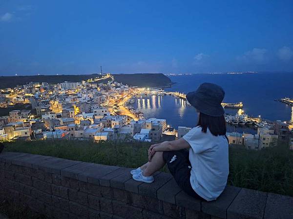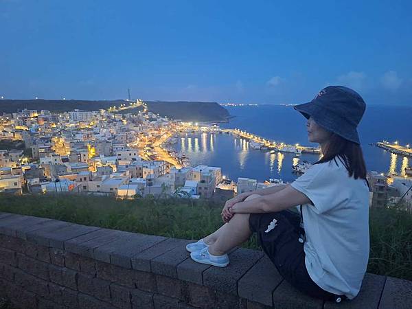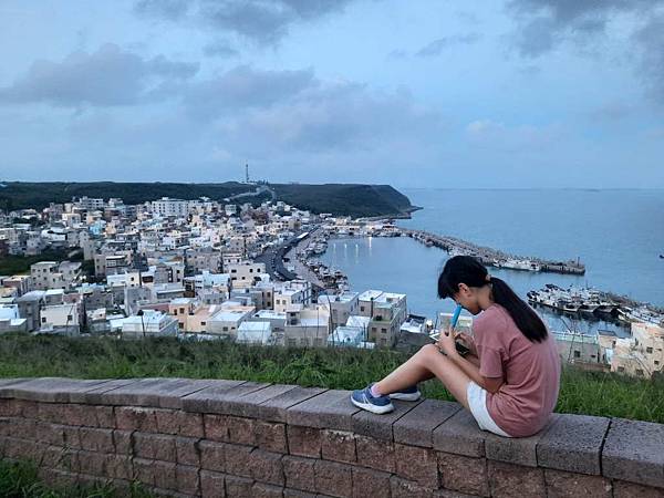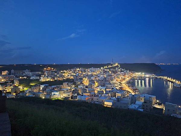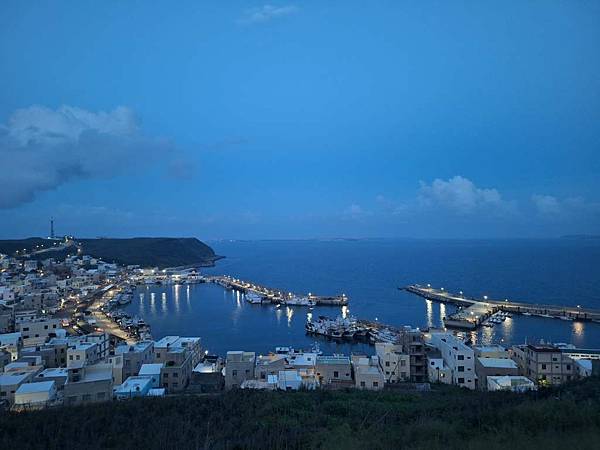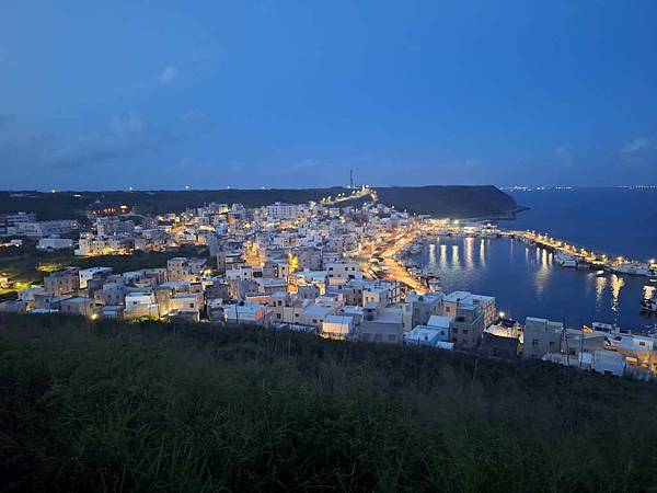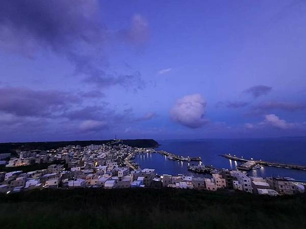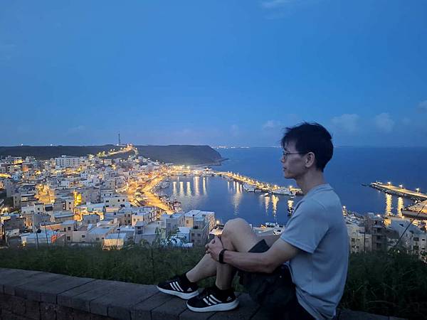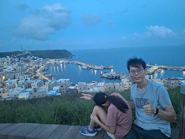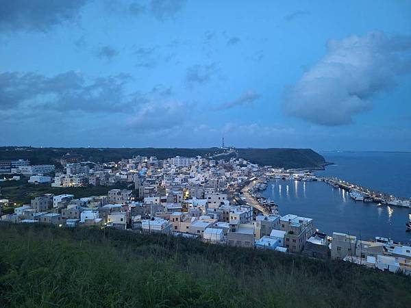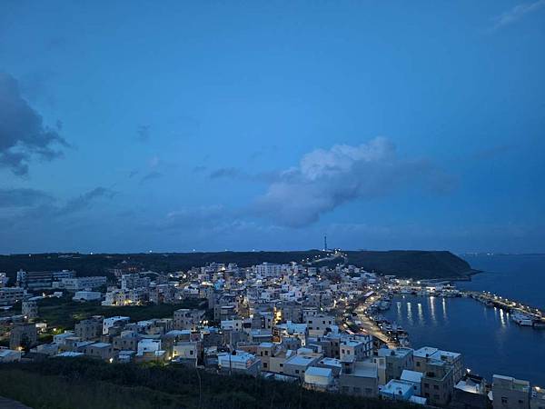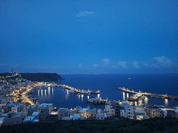 由於離太陽下山,外垵漁港點起燈來還有一點時間,雖然外垵漁火觀景台離漁翁島燈塔不遠,我們還是決定先去漁港內找吃的,買上來觀景台這邊吃。