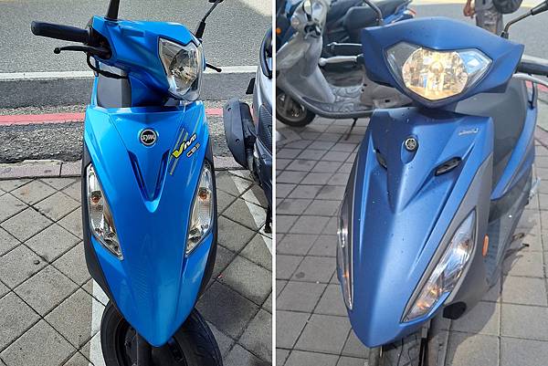 上一張照片看不太出來2台機車的大小,這一張就比較明顯,左邊是比爸騎的,明顯大台許多,坐起來也比較舒服,右邊是我騎的,比較小台。