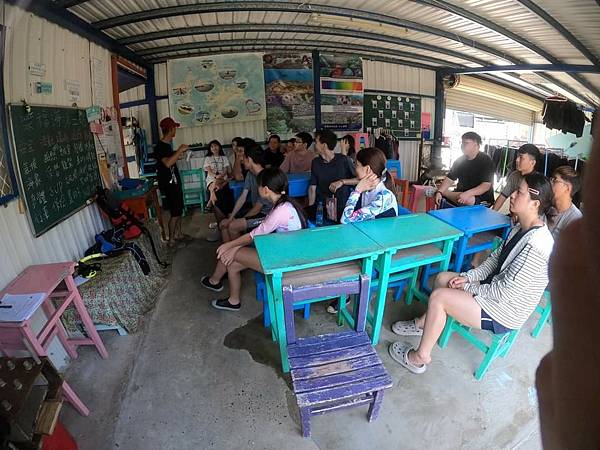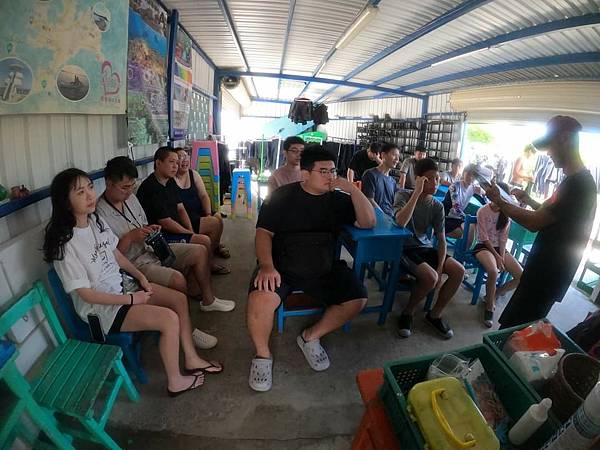 出發前,老闆講解浮潛安全注意事項,他說今年端午節前,澎湖天氣還很不好,3、4月還有寒流,風很大,不適合下水。直到端午節後,天氣才炎熱起來,可以下水從事水上活動。
