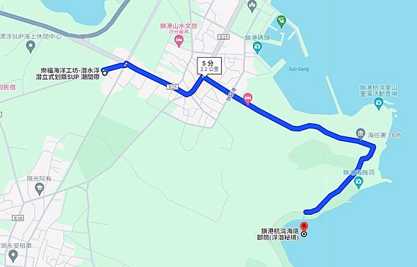 我們浮潛的地點在鎖港鎖港杭灣,跟著教練騎機車過去很快就到了。