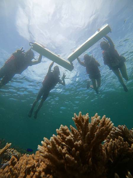 藍色珊瑚礁,這邊的海底珊瑚礁,聽教練說是老闆來復育的。