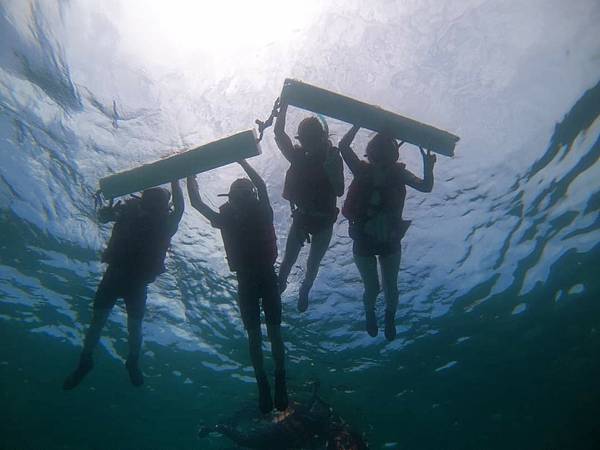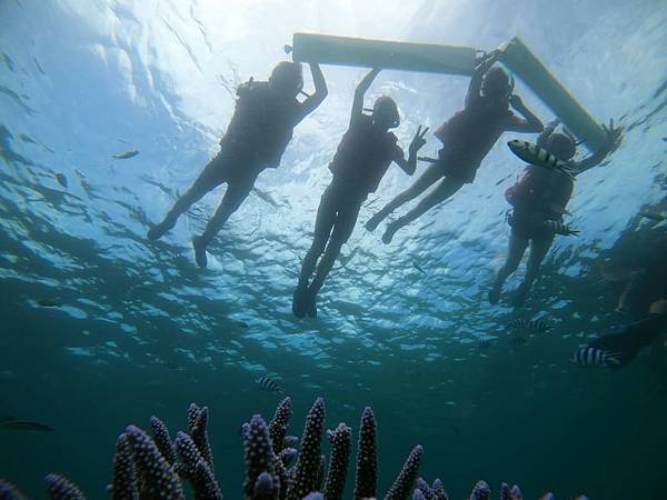 帶我們的教練相當年輕,是個大一學生,他潛到海底幫我們拍照。