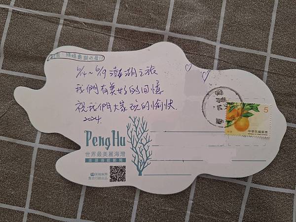 回來台灣本島後幾天,我們的海龜明信片也游(寄)回來了,呵呵。