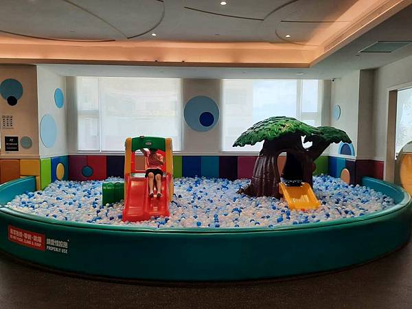 最後準備要去澎湖生活博物館時,咪咕還玩了一下小小溜滑梯及球池。