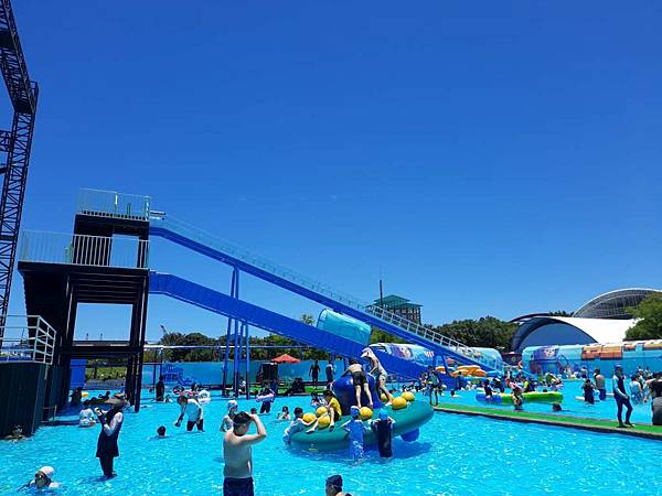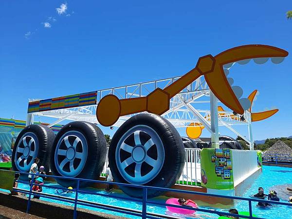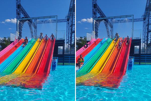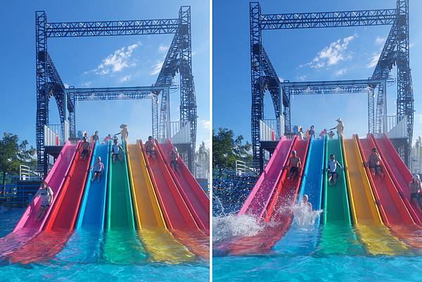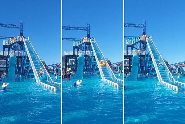 趁著中午休息時間,人變得比較少,我趕快去拍水上樂園設施。
