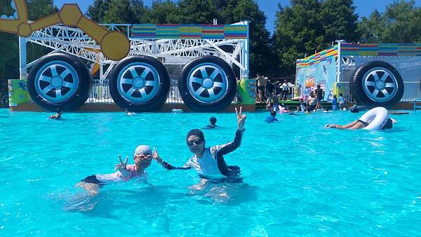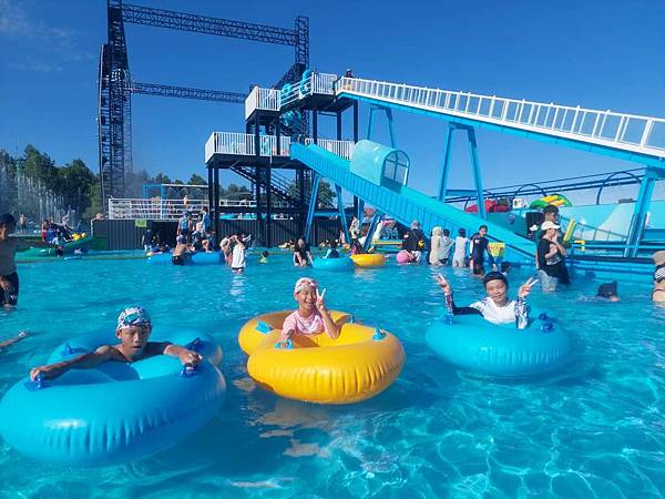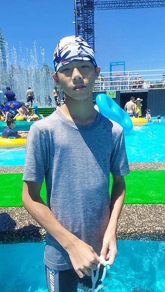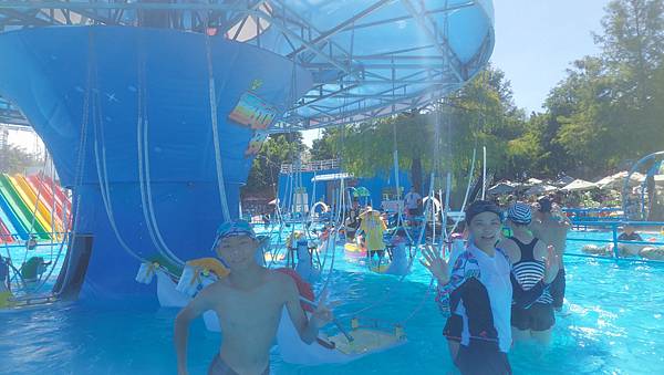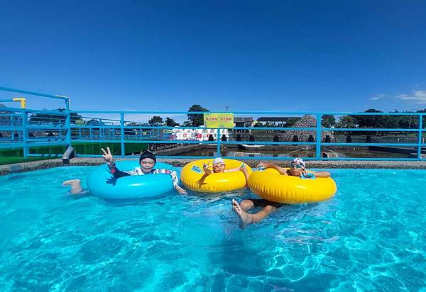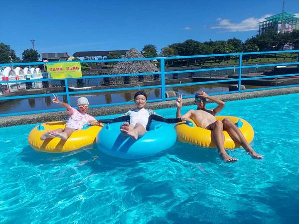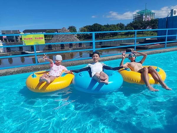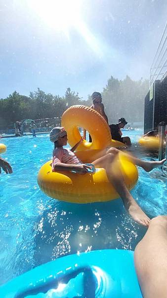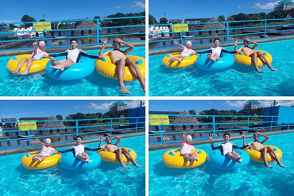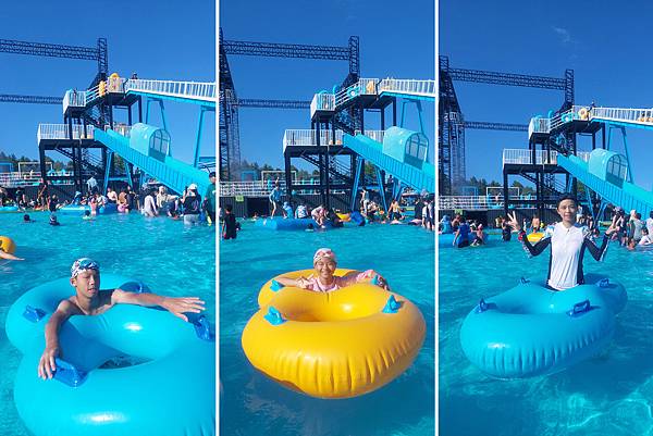 我們來玩漂漂河,拿到泳圈先來拍照。
