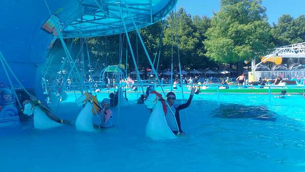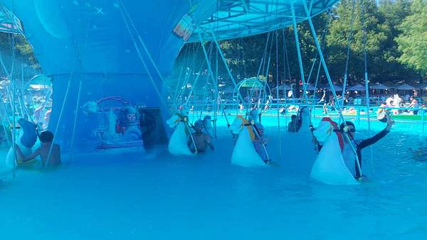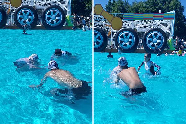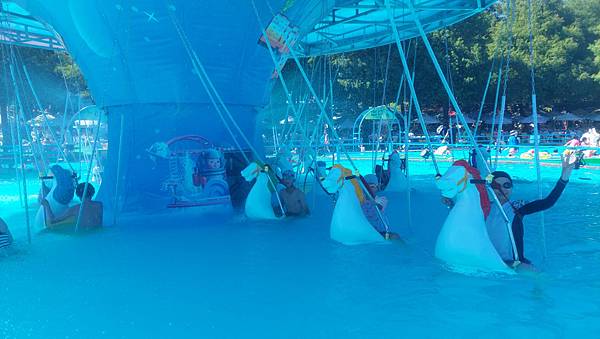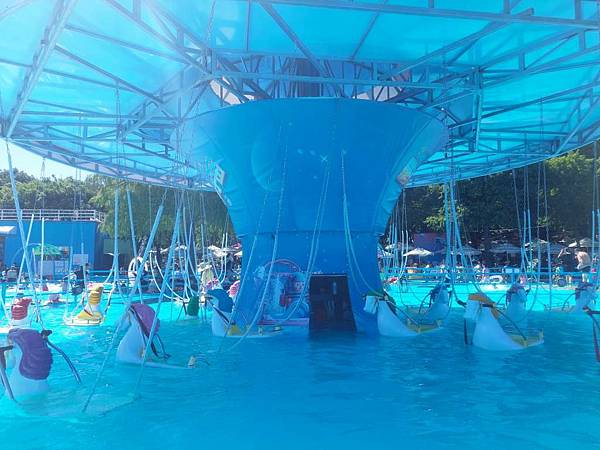 水中旋轉木馬真的很好玩,我們再來排隊。