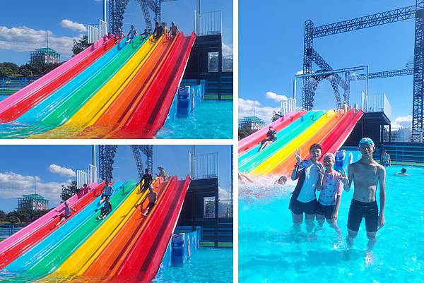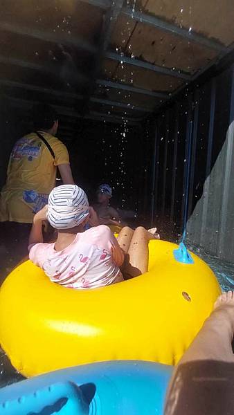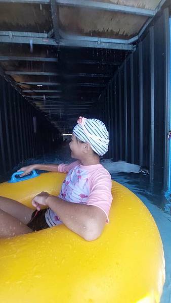 很快地就滑下來了,因為手要抓緊泳圈的扶手,所以無法錄影拍照。